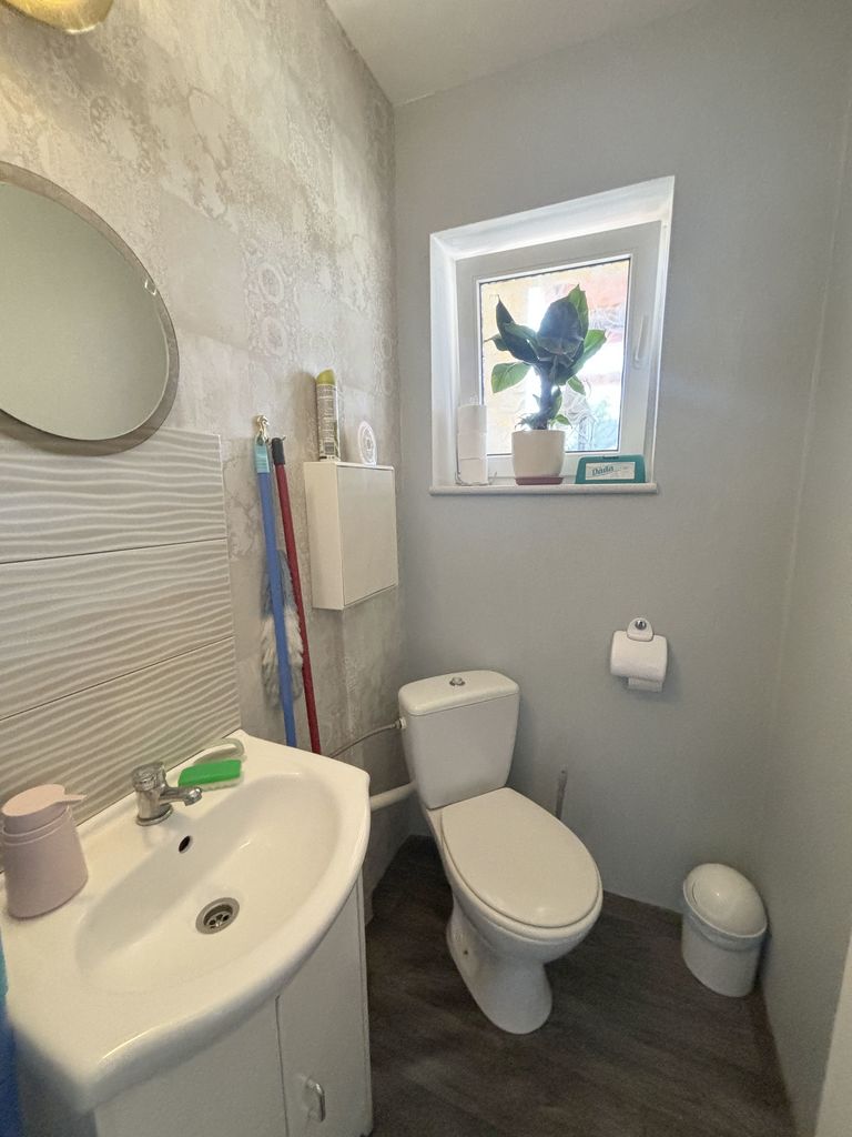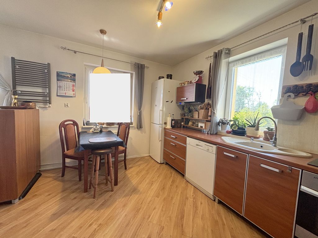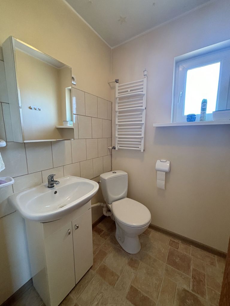 Dom w dobrym standardzie, nie wymagający nakładów finansowych. Ściany są gładzone, na pojedynczych ścianach tapeta. Na podłogach w pokojach i pomieszczeniach komunikacji położone są panele. Łazienki i toalety w glazurze i terakocie.
