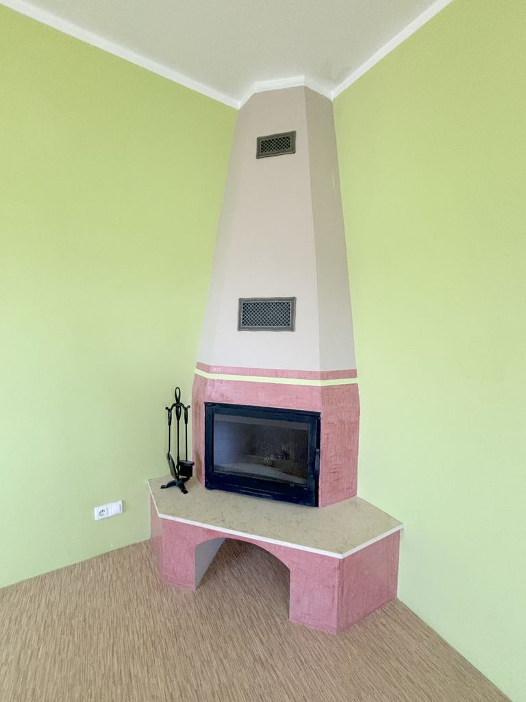 Dom ogrzewany nowoczesnym piecem na opał stały. Dodatkowym źródłem ciepła są dwa kominki.