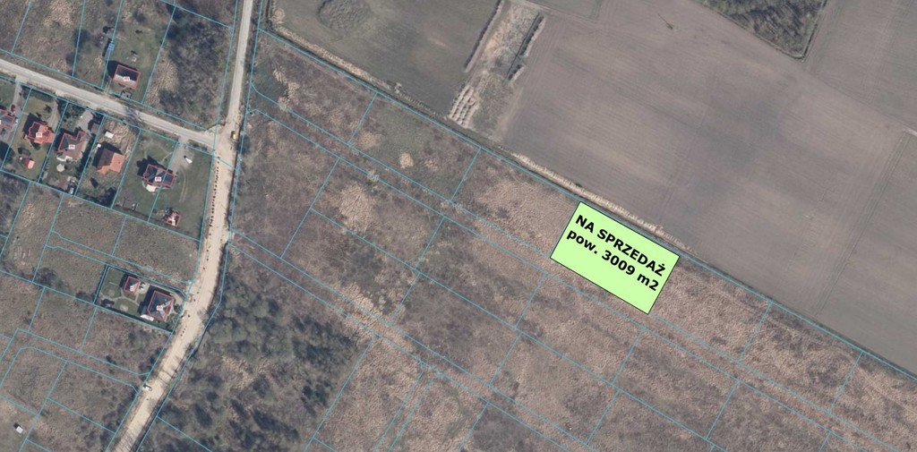 Przedmiotem oferty jest działka o powierzchni 3009 m2 o kształcie prostokąta.