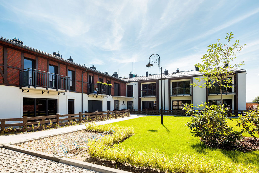 Na parterach są tarasy i ogródki a na piętrze balkon.