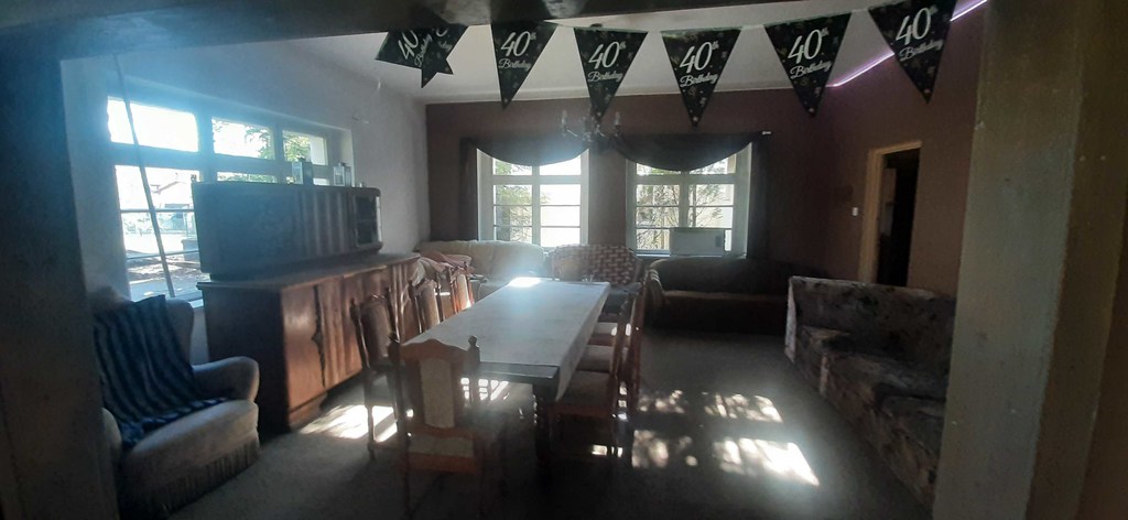 Na działce budynek z salą do organizowania imprez okolicznościowych. Kiedyś funkcjonował tu lokal. Budynki w stanie do remontu.