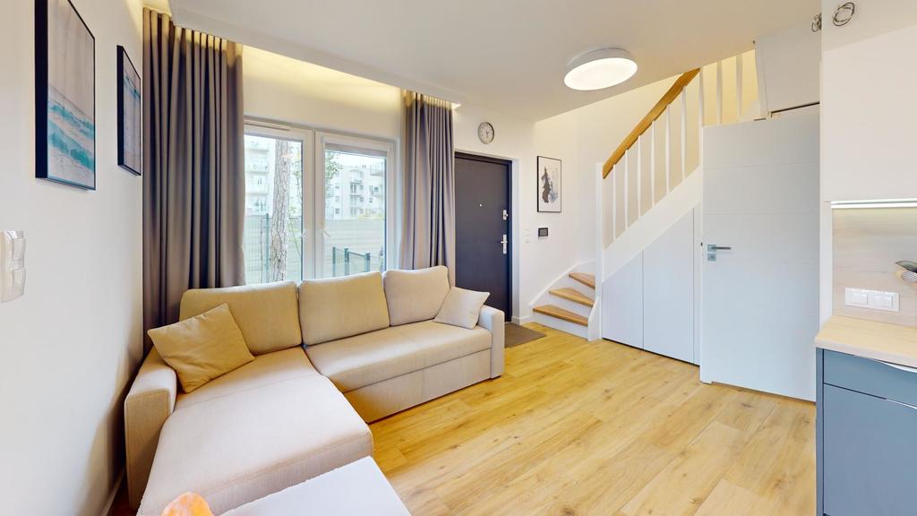 Odkryj dwupoziomowy apartament (44,60 m²) w Dziwnówku, który łączy kameralny spokój z infrastrukturą wartą miliony.