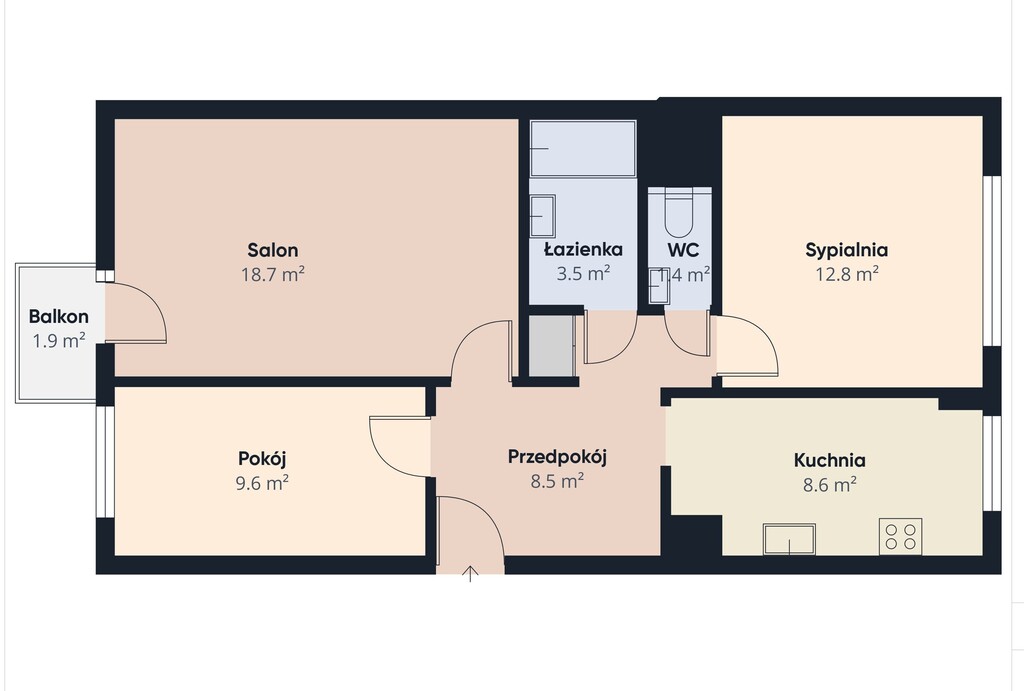 Na powierzchnię 63,6 mkw. składają się: