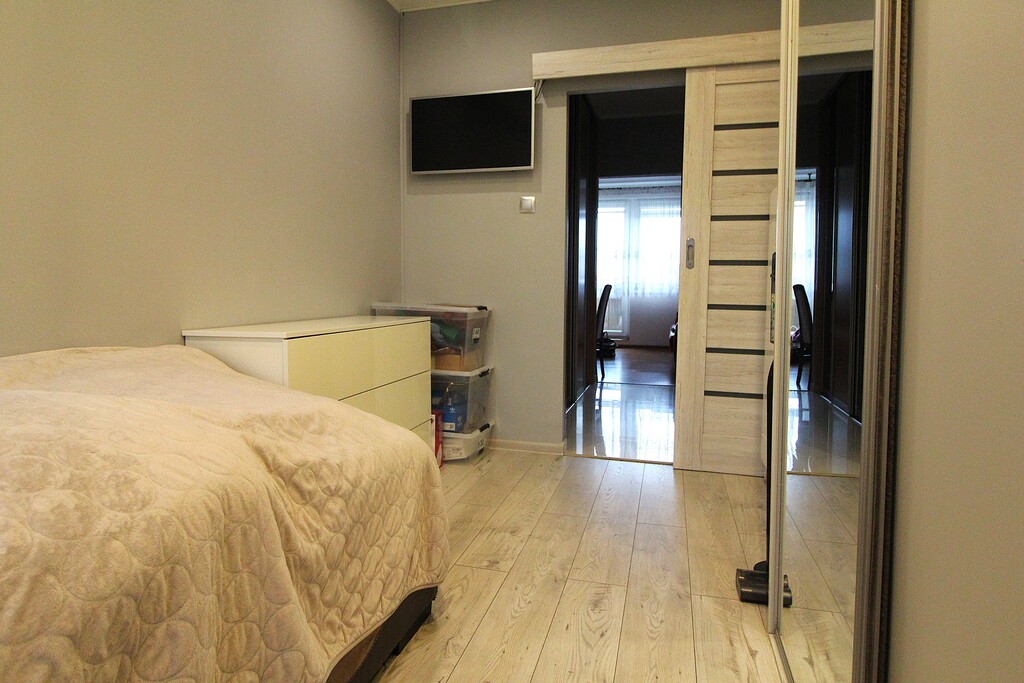 Brak parkingu bezpośrednio pod blokiem oraz trzecie piętro, powodują że mieszkanie jest ciche i wolne od spalin, co jest niewątpliwie atutem oferty.