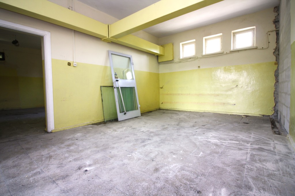 Budynek parterowy o powierzchni 193,5m2 został podzielony na dwa mieszkania, 105m2 i 87,87m2.