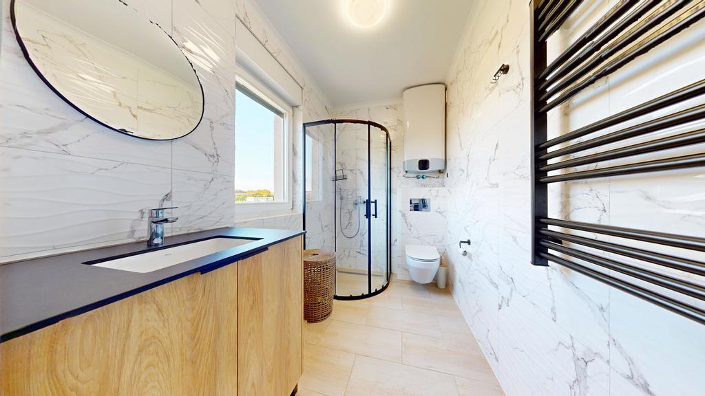 Całość zaprojektowana z dbałością o każdy szczegół. Zagospodarowany, ogrodzony teren z parkingiem dla 4 aut i domkiem gospodarczym.
