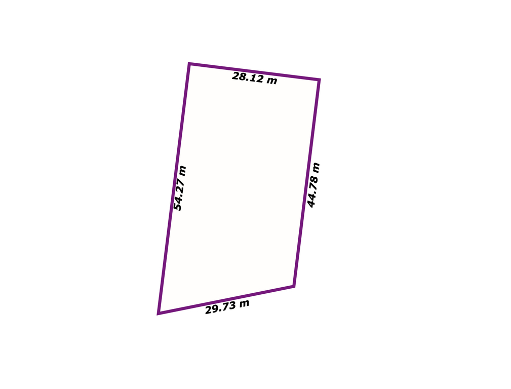 Kształt działki zbliżony do trapezu, wymiary: ok. 28m x 54m.