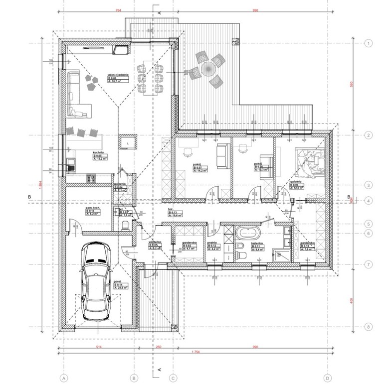 -kąt nachylenia połaci głównych dachu: od 25 do 40 stopni.