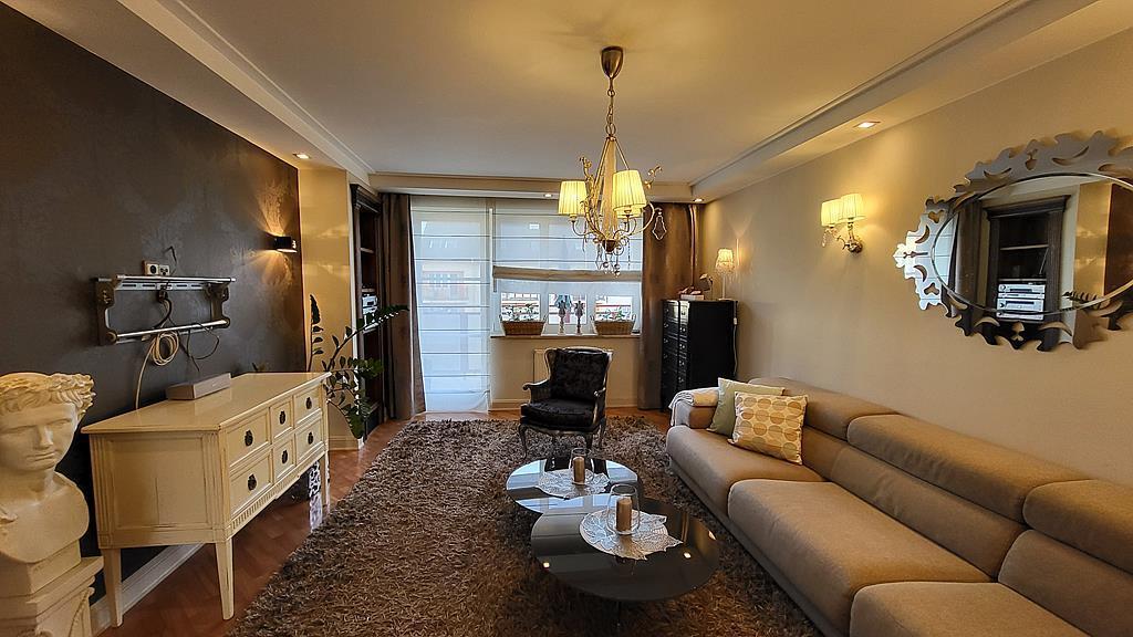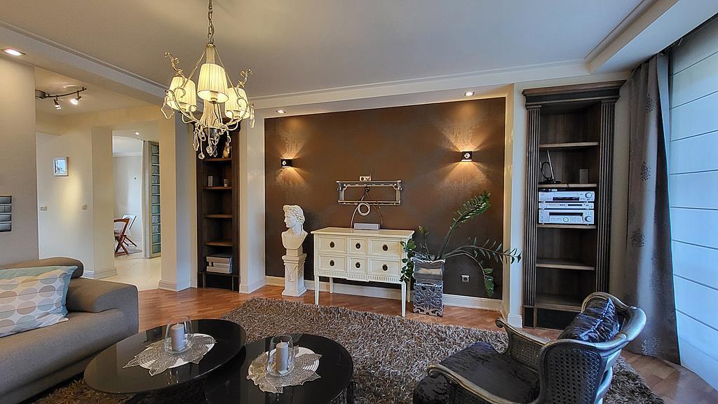 Pierwotnie mieszkanie było 5. pokojowe, jednak w wyniku połączenia jednego pokoju z kuchnią powstała wspólna przestrzeń ze strefą jadalnianą (istnieje możliwość przywrócenia stanu poprzedniego).