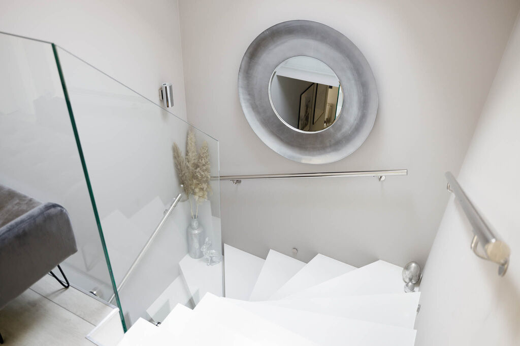 W pokojach bardzo dobrej jakości panele, w kuchni i hollu gres.