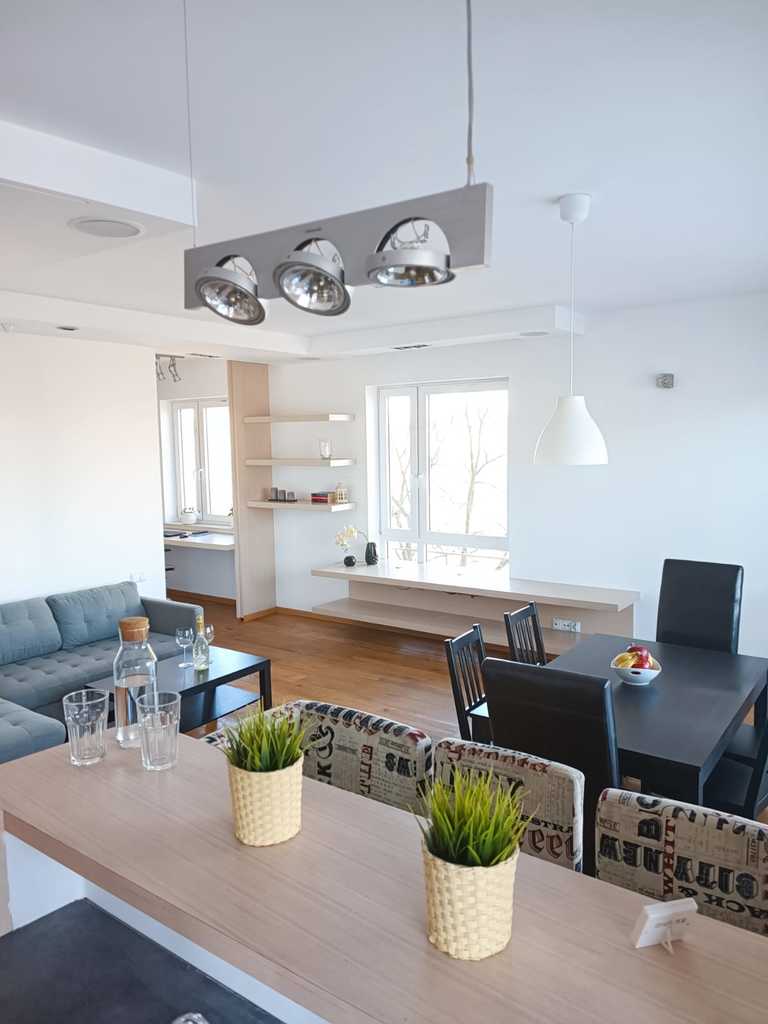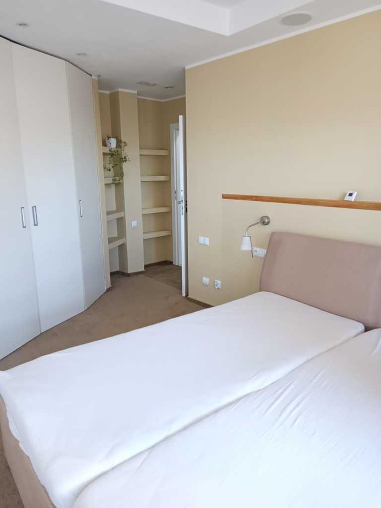 Apartament jednopoziomowy, o południowo-zachodniej wystawie okien został indywidualnie zaprojektowany i składa się z części dziennej oraz nocnej, 2 balkony, duża loggia i sucha sauna.