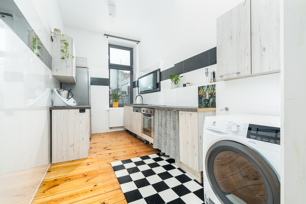 Lokal jest idealną propozycją dla osób poszukujących mieszkania w klimatycznych, przedwojennych kamienicach. Mieszkanie daje wiele możliwości aranżacyjnych, wykorzystujących jego niepowtarzalny urok, wysokie sufity, wykończenia ścian z odkrytą starą oryginalną cegłą oraz odrestaurowane oryginalne drewniane podłogi.