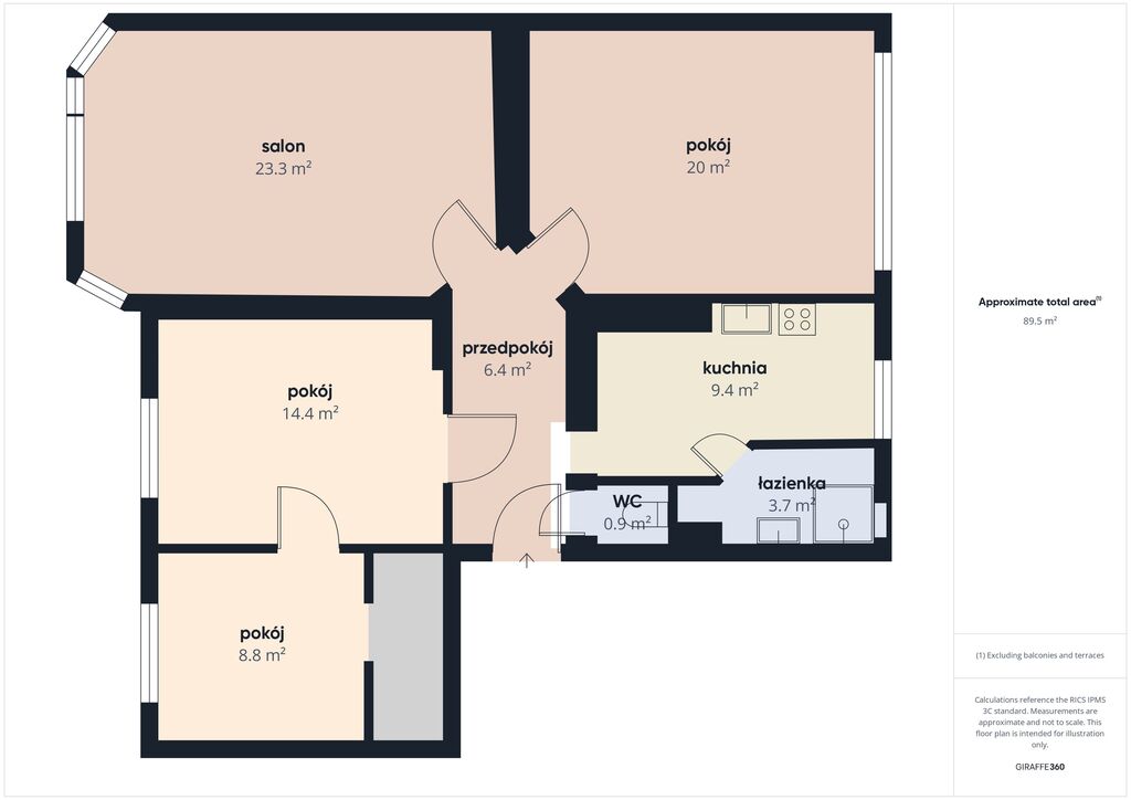 Trzech pokoi (20 m², 14,4 m², 8,8 m²) – doskonałe jako sypialnie, pokój dziecięcy, biuro lub garderoba,
