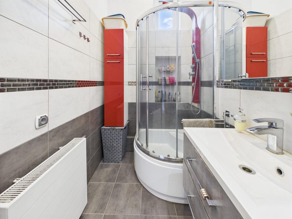 Łazienki (3,7 m²) z kabiną prysznicową i nowoczesną armaturą,